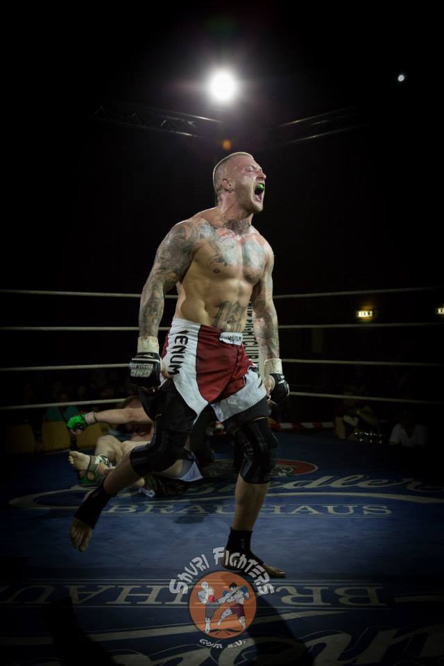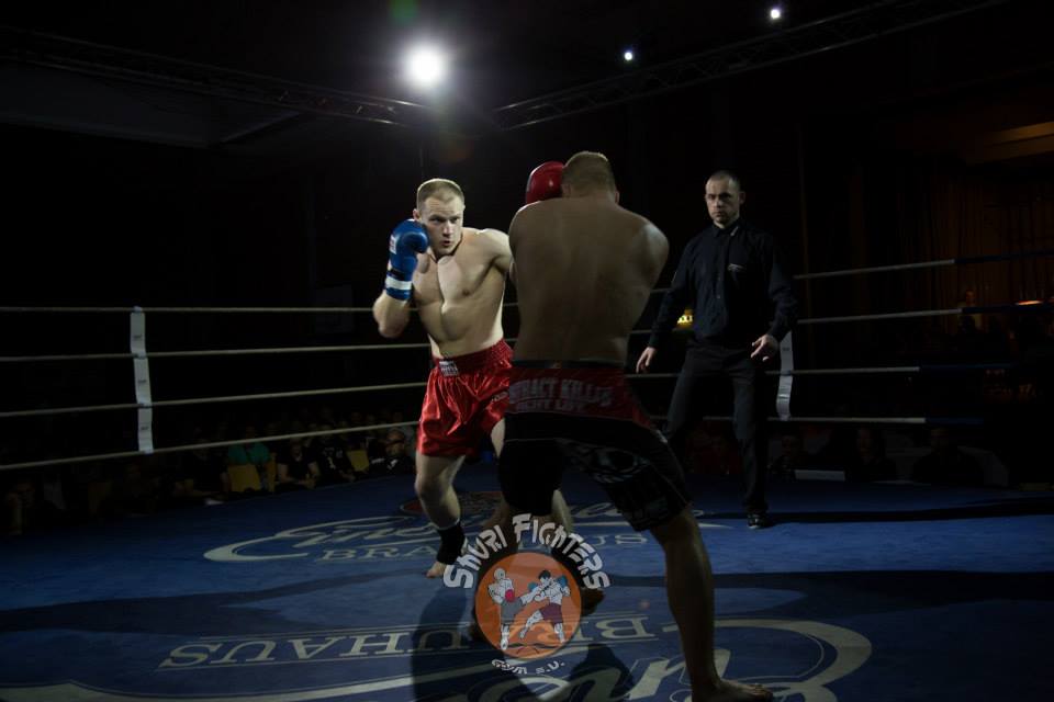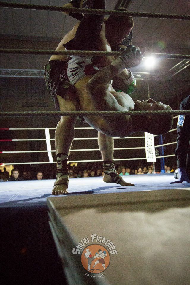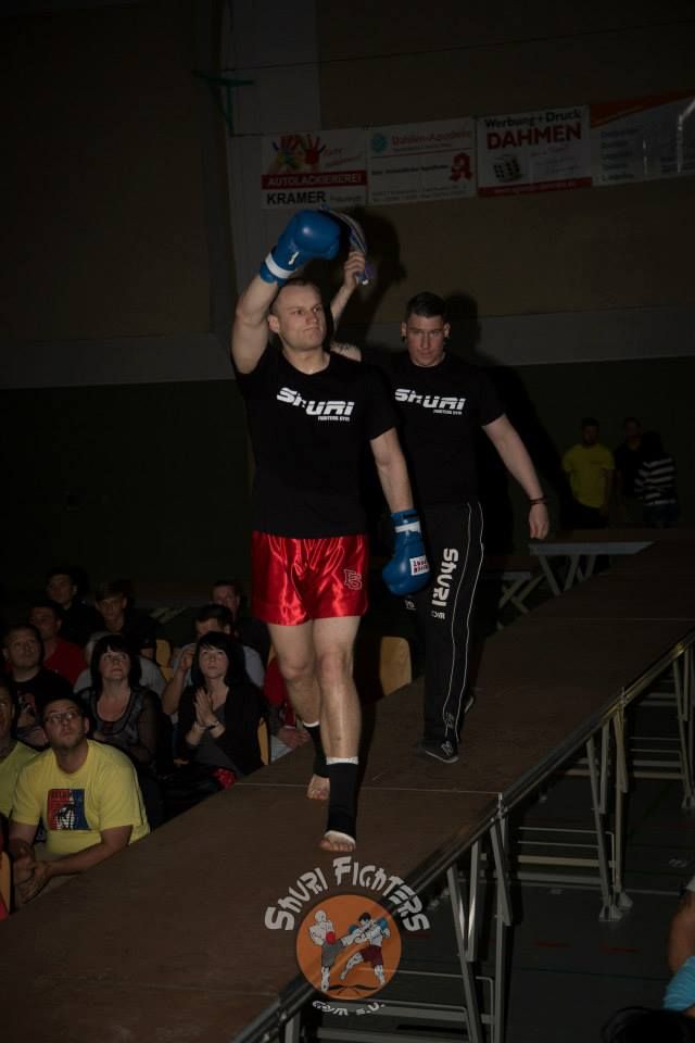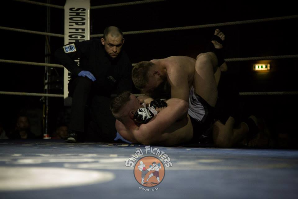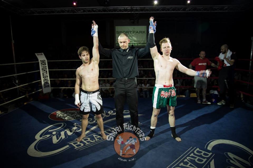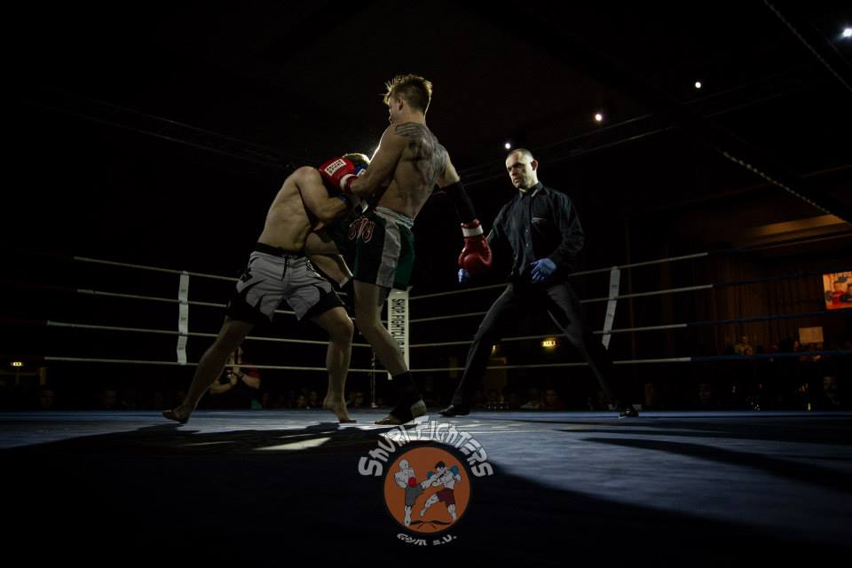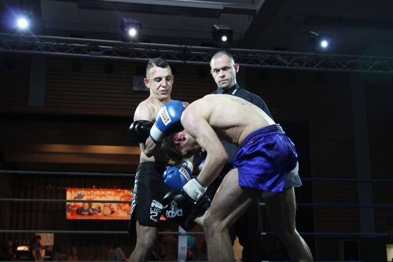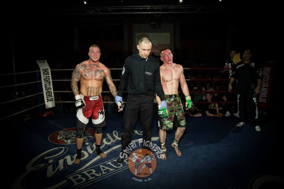 Voll auf ihre Kosten kamen die Zuschauer auch bei dem zweiten MMA Kampf des Abends zwischen Mario Platz von der Kraftwerk AG Rositz und dem Lokalmatadoren Tim Richter vom Shuri Gym Plauen. Platz und Richter, die bereits vor vier Jahren gegeneinander im Ring standen, boten sich einen erbitterten Kampf über zwei Runden. Nach einer kurzen Antastphase im Stand gingen beide Runden nach nur paar Sekunden in den Bodenkampf über, wo sich Mario und Tim immer wieder über Hebel in dominierende Positionen bringen und den Gegner mit Schlägen eindecken konnten. Die Halle tobte, als es Tim Richter gegen Ende der zweiten Runde gelang, seinen Gegner nach einer harten Schlagserie zur Aufgabe zu zwingen.